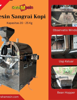 *Harga Hubungi CSMESIN ROASTING KOPI Graha Mesin menghadirkan Mesin Roasting Kopi 5KG yang digunakan untuk melakukan proses penyangraian biji kopi mentah (green bean) agar menghasilkan cita rasa, aroma, dan warna yang khas sebelum siap diseduh. Mesin ini memungkinkan proses penyangraian berlangsung stabil, efisien, dan hasilnya matang merata di setiap batch. Dengan kapasitas 5 kg per proses, mesin ini… selengkapnya