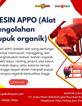 *Harga Hubungi CSMesin APPO (Alat pengolahan pupuk organik) Graha Mesin menghadirkan Mesin APPO (Alat Pengolahan Pupuk Organik) Kapasitas 100 Kg/Jam, sebuah inovasi unggulan yang berfungsi untuk mencacah, menggiling, dan menghancurkan berbagai bahan organik seperti daun kering, jerami, ranting, dan limbah dapur menjadi ukuran kecil yang siap difermentasi menjadi pupuk kompos alami. Mesin ini dirancang untuk mempermudah proses… selengkapnya