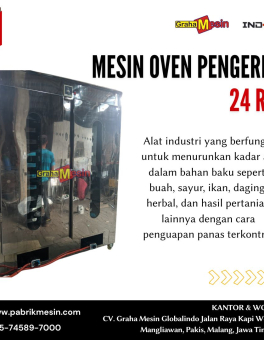 *Harga Hubungi CSMesin Oven Pengering 24 Rak Graha Mesin menghadirkan Mesin Oven Pengering 24 Rak sebagai alat pengering serbaguna yang dirancang untuk membantu pelaku usaha mengeringkan berbagai bahan produksi seperti buah, sayur, ikan, biji-bijian, herbal, hingga makanan olahan secara cepat dan merata.Dengan sistem sirkulasi udara panas yang stabil dan ruang oven berkapasitas besar, mesin ini mampu menjaga… selengkapnya
