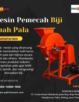 MESIN PEMECAH BIJI BUAH PALA Graha Mesin menghadirkan mesin pemecah biji buah pala, yaitu alat khusus yang berfungsi untuk memecahkan cangkang keras pala agar bijinya terpisah dengan lebih cepat, aman, dan konsisten. Mesin ini dibuat untuk mempermudah proses produksi industri pengolahan pala, baik skala UMKM maupun pabrik, sehingga tidak lagi mengandalkan tenaga manual yang lambat… selengkapnya