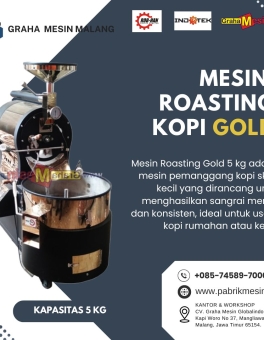 Mesin Roasting Kopi Gold 5 kg Mesin Roasting Gold 5 kg adalah solusi pemanggang kopi skala kecil yang andal, mudah dioperasikan, dan menghasilkan sangrai berkualitas tinggi. Didesain khusus untuk usaha kopi rumahan, kedai kecil, hingga startup kopi—dengan teknologi kontrol suhu presisi dan bahan stainless steel tahan karat. Video Mesin Spesifikasi Teknis: Kapasitas: 5 kg/batch Bahan… selengkapnya