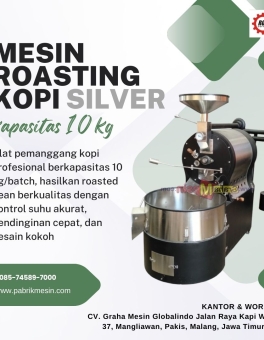 Mesin Roasting Kopi Silver Mesin roasting kopi silver 10 kg Graha Mesin Malang adalah alat profesional untuk memanggang biji kopi mentah hingga matang, ideal untuk usaha kopi skala menengah hingga besar. Spesifikasi: Kapasitas: 10 kg/batch Bahan utama: Stainless steel food grade + body cat hijau anti karat Sumber panas: Gas LPG (dengan regulator & selang)… selengkapnya
