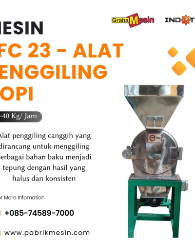 Graha Mesin menghadirkan Mesin FFC 23 SS, alat penggiling serbaguna yang dirancang khusus untuk menghaluskan berbagai bahan kering seperti biji kopi, beras, jagung, rempah, dan bahan herbal. Mesin ini menggunakan sistem disc mill dengan dua piringan bergerigi dari stainless steel yang bekerja saling berputar, menghasilkan bubuk halus dengan tingkat kehalusan merata dan higienis.