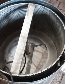 Setelah proses blender selesai, mesin secara otomatis memindahkan bahan ke dalam tabung spinner.