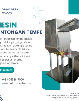Mesin Lontongan Tempe Mesin Lontongan Tempe yang diproduksi oleh Graha Mesin Malang merupakan solusi inovatif bagi pelaku usaha tempe—baik skala UMKM maupun industri kecil-menengah—dalam meningkatkan efisiensi, higienitas, dan konsistensi proses pengemasan tempe siap jual. Video Mesin Lontongan Tempe Fitur Utama Mesin Lontongan Tempe Graha Mesin Malang Desain Ergonomis & Food-Grade Materials Seluruh komponen yang bersentuhan… selengkapnya