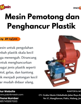 Mesin Pemotong dan Penghancur Plastik Graha Mesin menghadirkan Mesin Pemotong dan Penghancur Plastik, yaitu alat industri yang berfungsi untuk memotong, mencacah, serta menghancurkan limbah plastik menjadi potongan kecil (flakes) berukuran sekitar ±10 mm. Mesin ini sangat dibutuhkan oleh pelaku usaha daur ulang plastik, pengrajin bahan plastik, maupun industri pengolahan limbah untuk mempermudah proses pencucian dan… selengkapnya