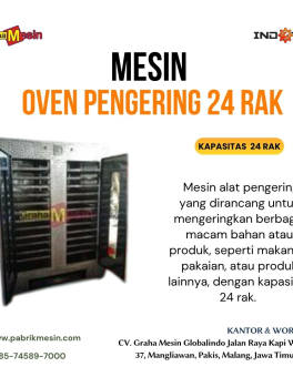 Mesin Oven Pengering 24 Rak Graha Mesin menghadirkan Mesin Oven Pengering 24 Rak sebagai alat pengering serbaguna yang dirancang untuk membantu pelaku usaha mengeringkan berbagai bahan produksi seperti buah, sayur, ikan, biji-bijian, herbal, hingga makanan olahan secara cepat dan merata.Dengan sistem sirkulasi udara panas yang stabil dan ruang oven berkapasitas besar, mesin ini mampu menjaga… selengkapnya