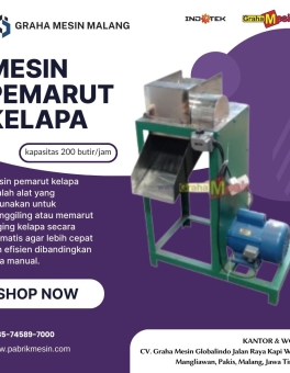 Mesin Pemarut Kelapa Mesin pemarut kelapa adalah alat mekanis yang dirancang khusus untuk memarut daging kelapa secara otomatis dengan kecepatan tinggi. Fungsinya utama adalah menggantikan proses manual yang melelahkan dan lambat, sehingga sangat ideal untuk usaha rumahan, warung makan, atau industri pengolahan kelapa skala kecil hingga menengah. Video Mesin Spesifikasi Teknis Kapasitas: 200 butir/jam Daya… selengkapnya