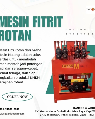 Mesin Fitri Rotan adalah mesin pembelah rotan otomatis berbasis diesel yang dikembangkan khusus oleh Graha Mesin Malang untuk mempermudah dan mempercepat proses pengolahan rotan mentah menjadi bahan baku siap anyam. Dengan desain kokoh, sistem roller presisi, dan tenaga diesel tangguh, mesin ini menjadi solusi ideal bagi UMKM,